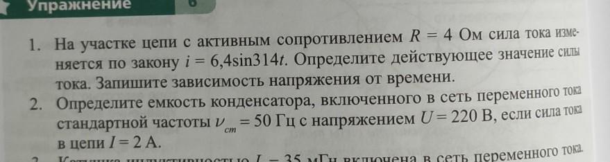 1. На участке цепи с активным сопротивлением Ом сила тока изменяется по закону