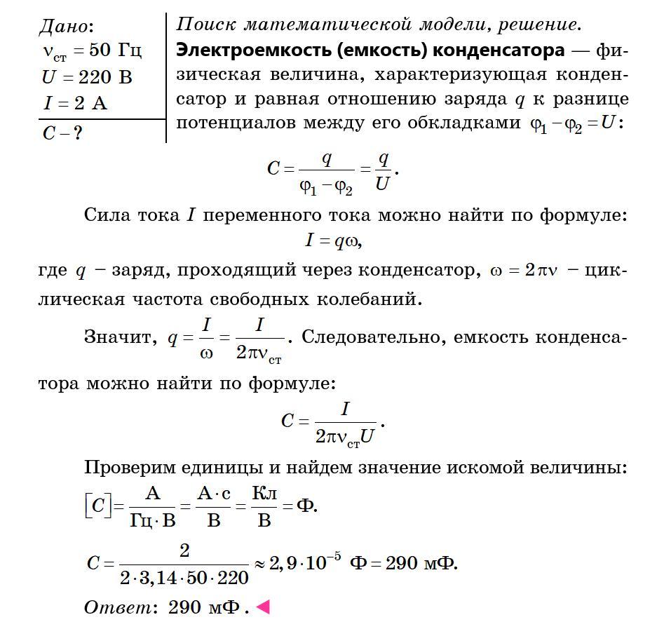2. Определите емкость конденсатора, включенного в сеть переменного тока стандартной частоты Гц с напряжением