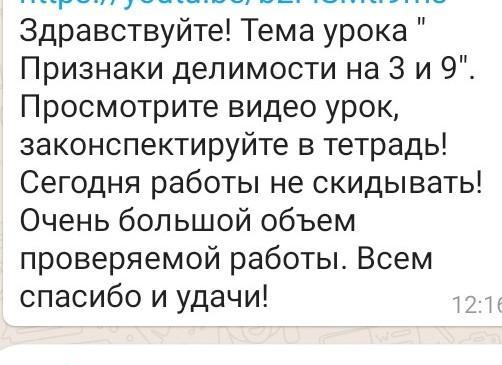 Например, число 477 делится на 9, так как 4 + 7 + 7 = 18 и 18 делится на 9, а число 120121 — не делится, так как 1 + 2 + 0 + 1 + 2 + 1 = 7 и 7 не делится на 9.--- может быть так