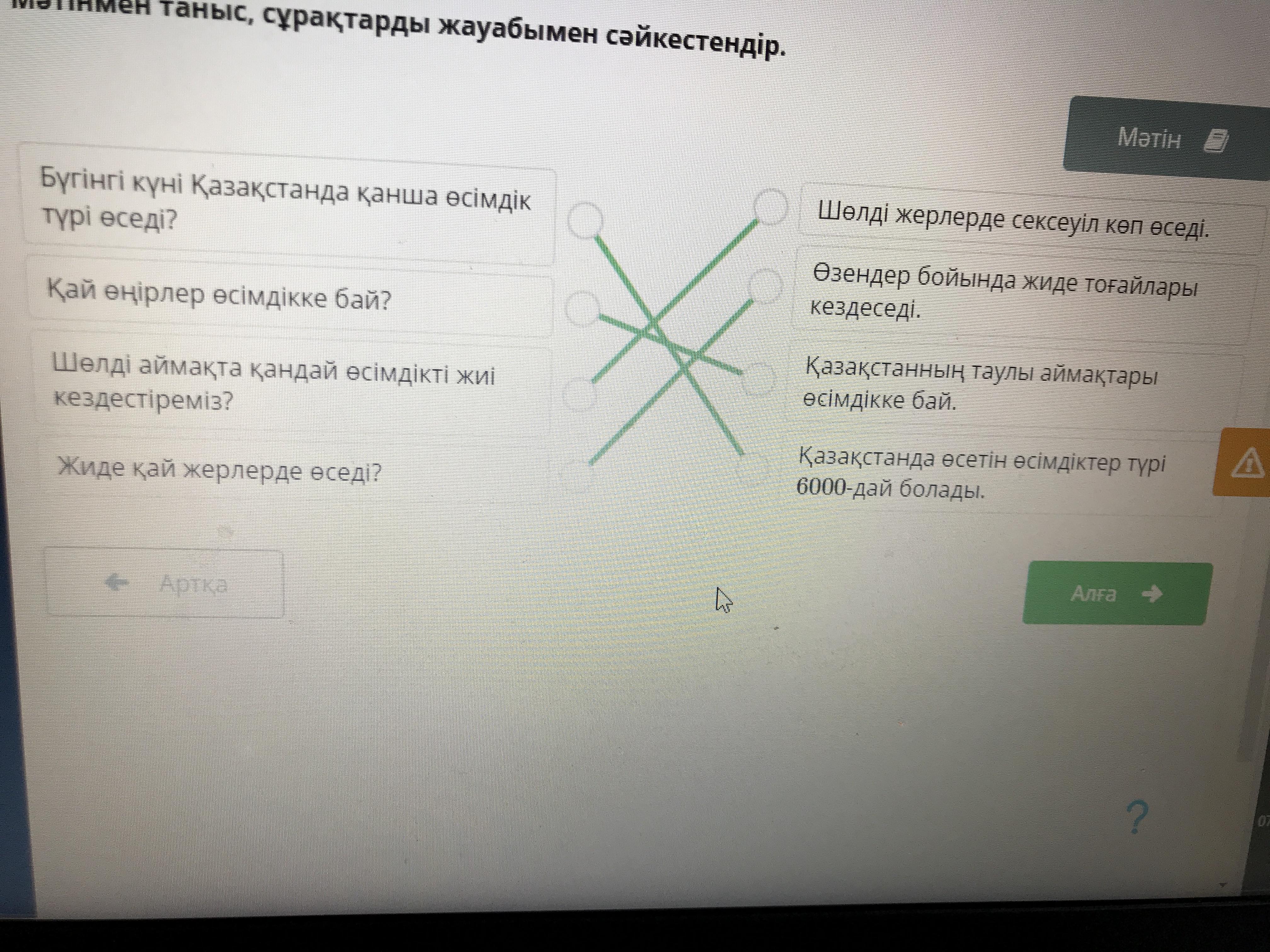 Мәтінмен таныс, сұрақтарды жауабымен сәйкестендір.