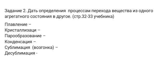 Дать определение процессам перехода вещества из одного агрегатного состояния в другое