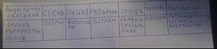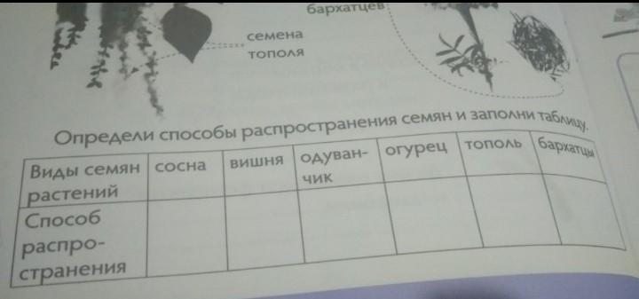Определи способы распространения семян и заполни таблицу