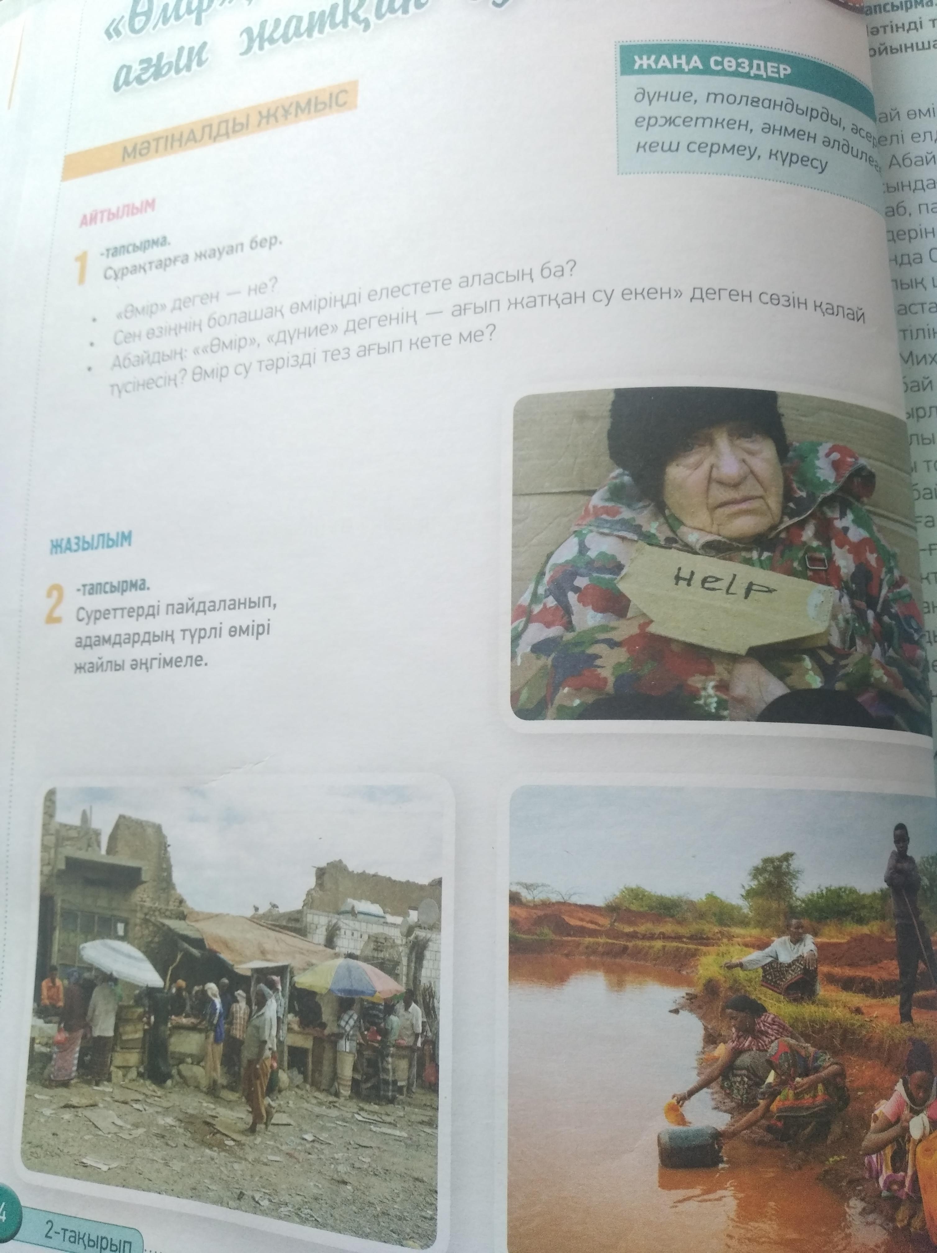 2 тапсырма сүреттерді пайдаланып,адамдардың түрлі өмірі жайлы әңгімеле