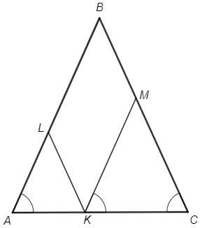 На боковых сторонах AB и BC равнобедренного треугольника ABC отмечены точки L и M, а на основании AC отмечена точка К так, что KL || BC и KM || AB. Найдите периметр четырёхугольника KLBM, если BC=10 см. Пожалуйста ,на 30 баллов , заранее спасибо )