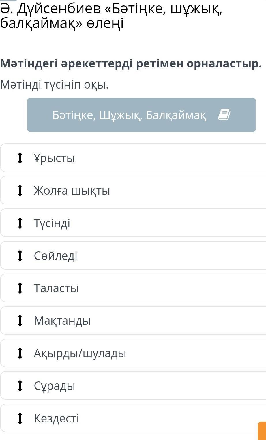 Мәтіндіндегі әрекеттерді ретімен орналастыр. Мәтінді түсініп оқы.помагите пожалуста срочно