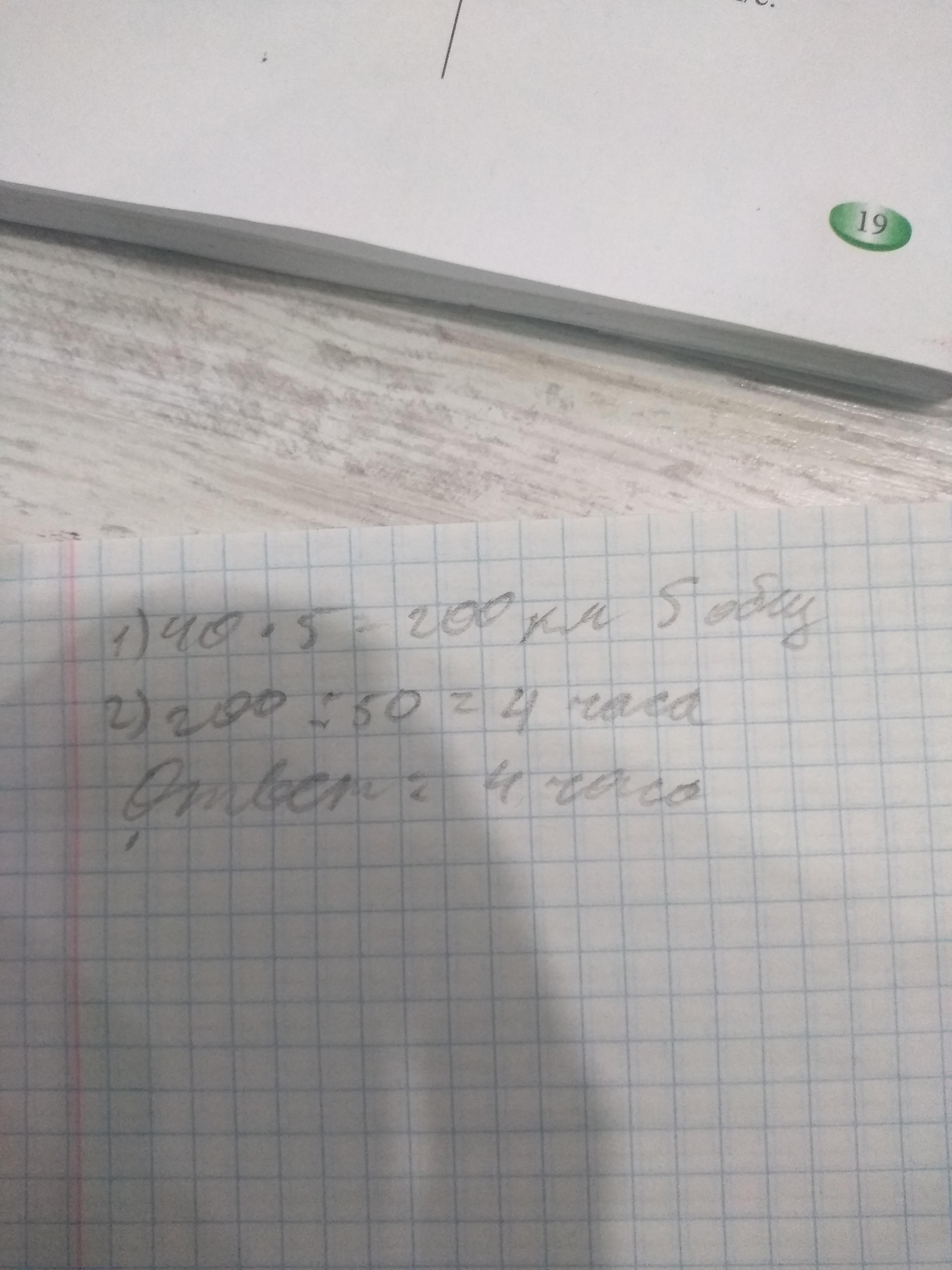 автобус проехал 5ч со скоростью 40 км/ч. За какое время он преодолел бы это расстояние со скоростью 50км/ч