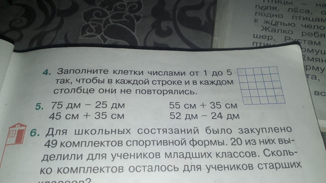 Заполните клетки числами от один до пять так чтобы в каждом строке и в каждом столбце не повторялись.
