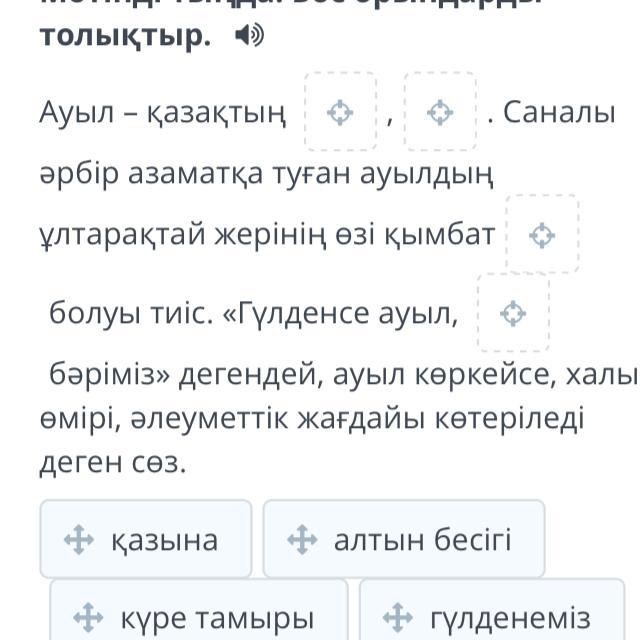 1. Алтын бесігі, 2. күре тамыры, 3. - 4. қазына, 5. гүлденеміз