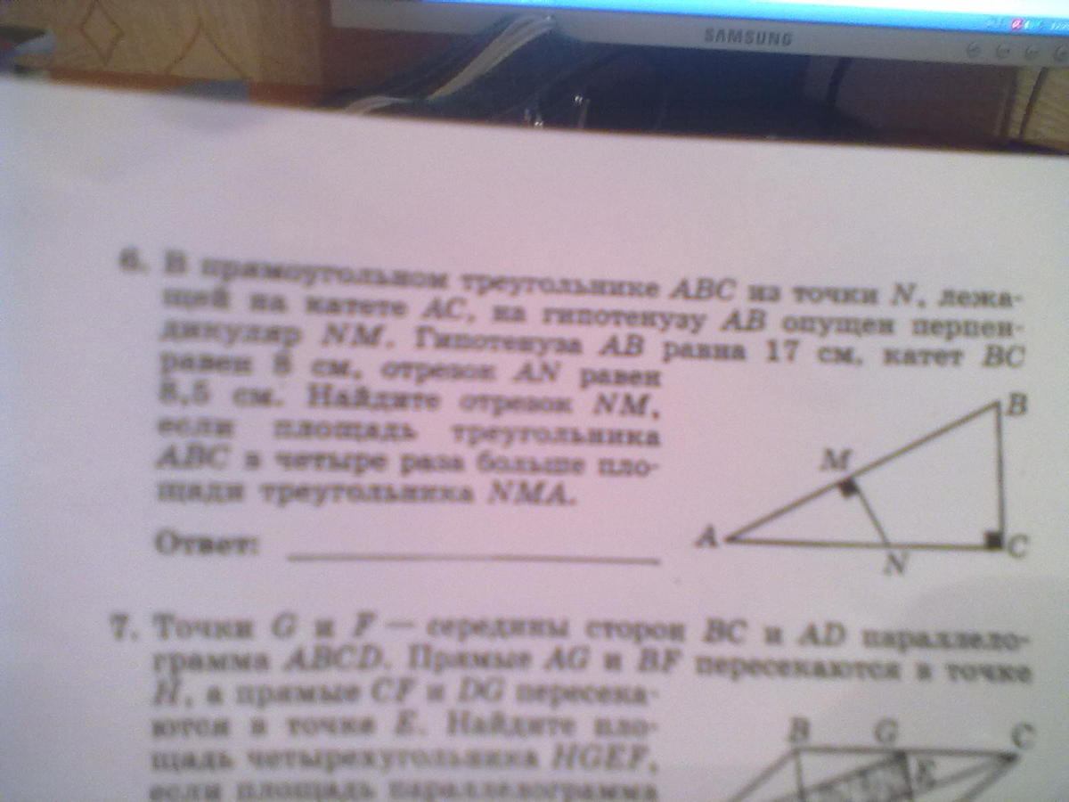 Изображение треугольника прилагается.