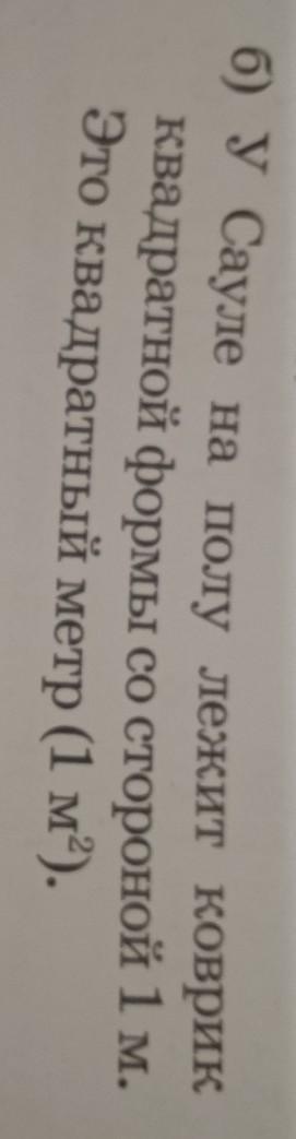 У Сауле на полу лежит коврик квадратной формы со стороной 1м. Это квадратный метр (1 м.)