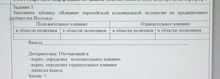 Заполните таблицу "Влияние европейской колониальной экспансии на традиционные общества Востока"