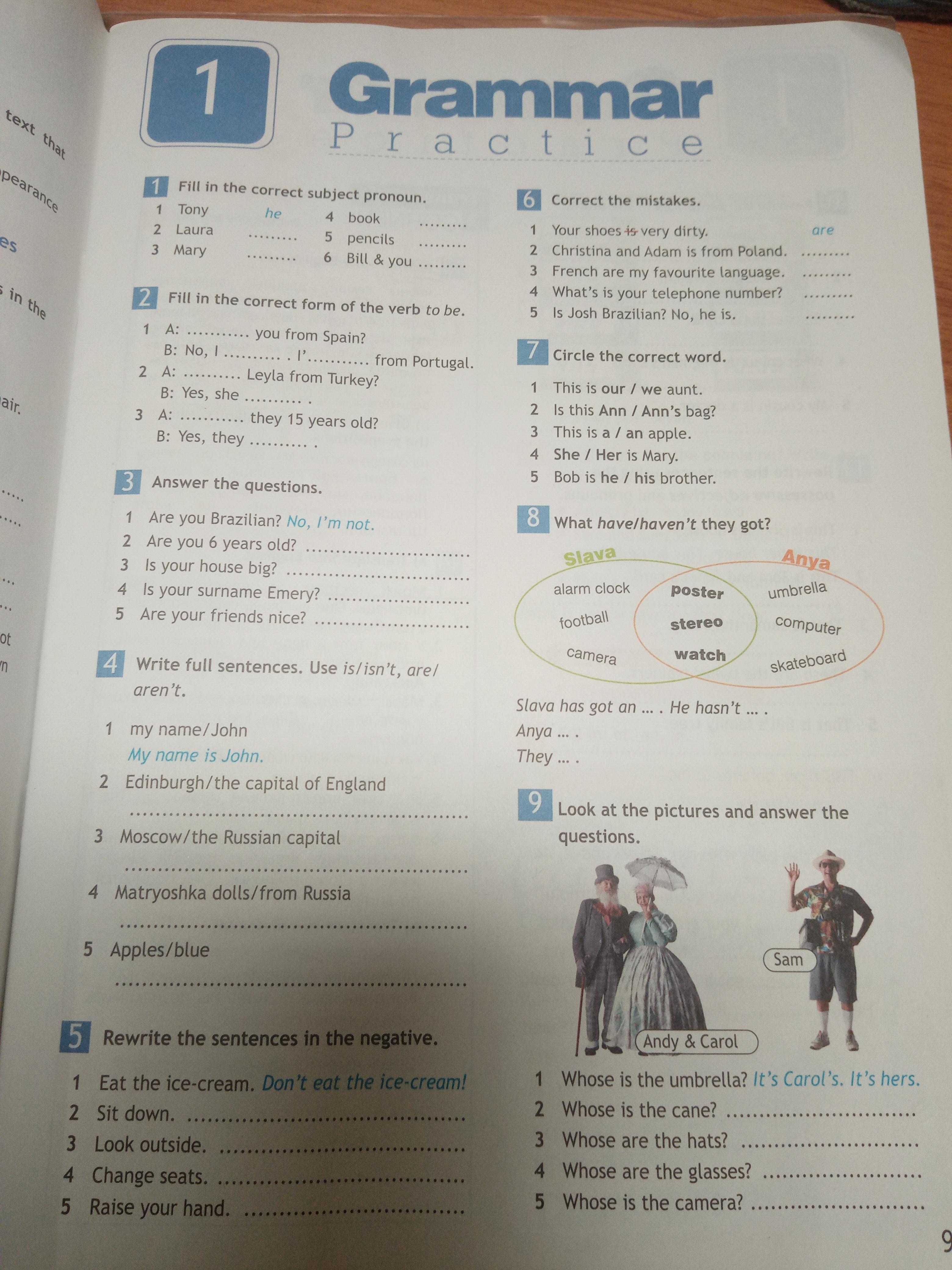 1.Slava has got an alarm clock.He hasn't got an umbrella