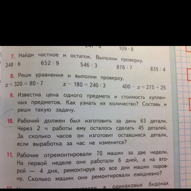 Рабочий должен был изготовить за день 63 детали.Через 2 часа работы ему осталось сделать 45 деталей.За сколько часов он изготовит оставшиеся детали,если выработка за час не изменится?
