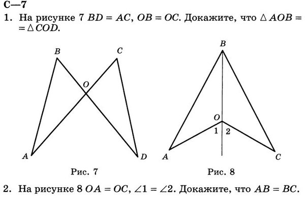 так как АО=ОС углы равны ,а ВО общая=> треугольники АВО иСВО равны по двум сторонам и углу.=> АВ=ВС