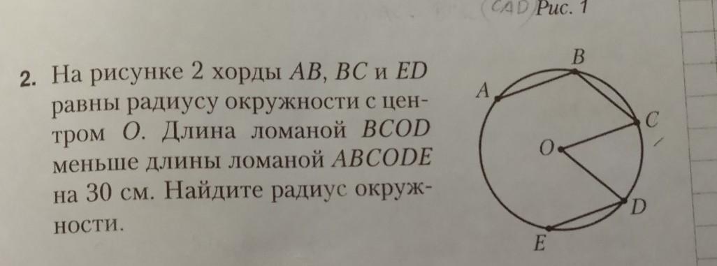 ABCODE-BCOD=30 см, то пусть радиус равен R. Тогда BCOD=3R, а