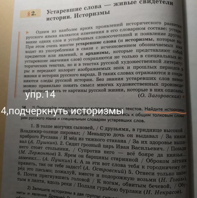Упражнение 14 к родному языку вербицкая 7 класс на тетради напишите пожалуйста!!!!Отдам все баллы!Выпишите из упражнения историзмы.