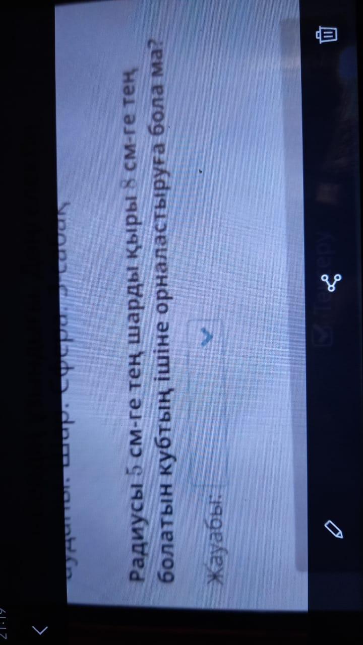 радиусы 5 см-ге тен шарды кыры 8 см-ге тен болатын кубтын ишине орналастыруга бола ма?