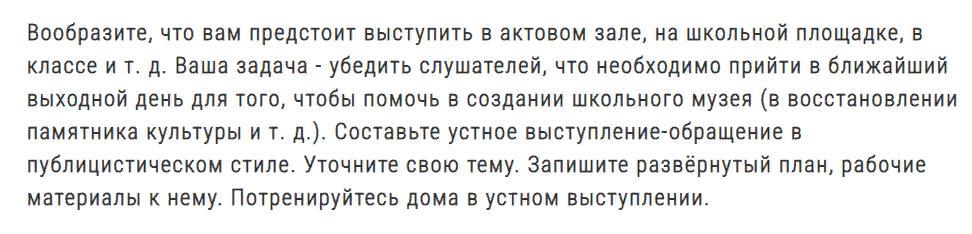 "Прошу минуточку внимания! Добрый день дорогие собравшиеся! Я очень благодарен вам за то что вы сюда пришли, сегодня мы будем обсуждать очень важную тему " постройку нашего нового школьного музея"! Это очень ответственно так что прошу каждого из здесь присутствующих внимательно выслушать меня. В воскресенье в 12:00 прошу вас принять участие, еще раз повторюсь, что работа ответственная поэтому требует внимательности, помощь принимается как от учеников, так и от их родителей. Потратив всего лишь один час своего времени мы сможем помочь нашей любимой школе и создать комфортные условия для наших будущих поколений. Приходите все! Мы вас ждем!"