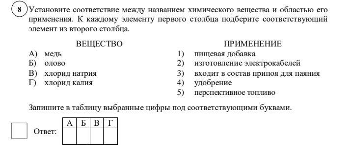 B) хлорид натрия Г) хлорид калия