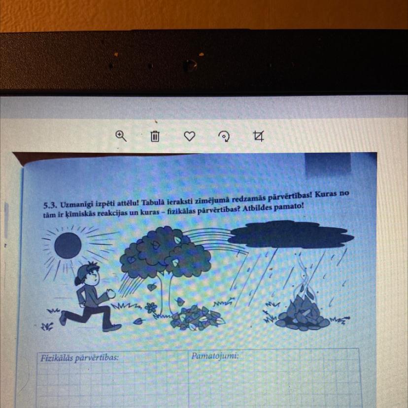 Ну на фото я увидел, что там горит огонь, идет дождь, на заднем плане радуга и падают листья.