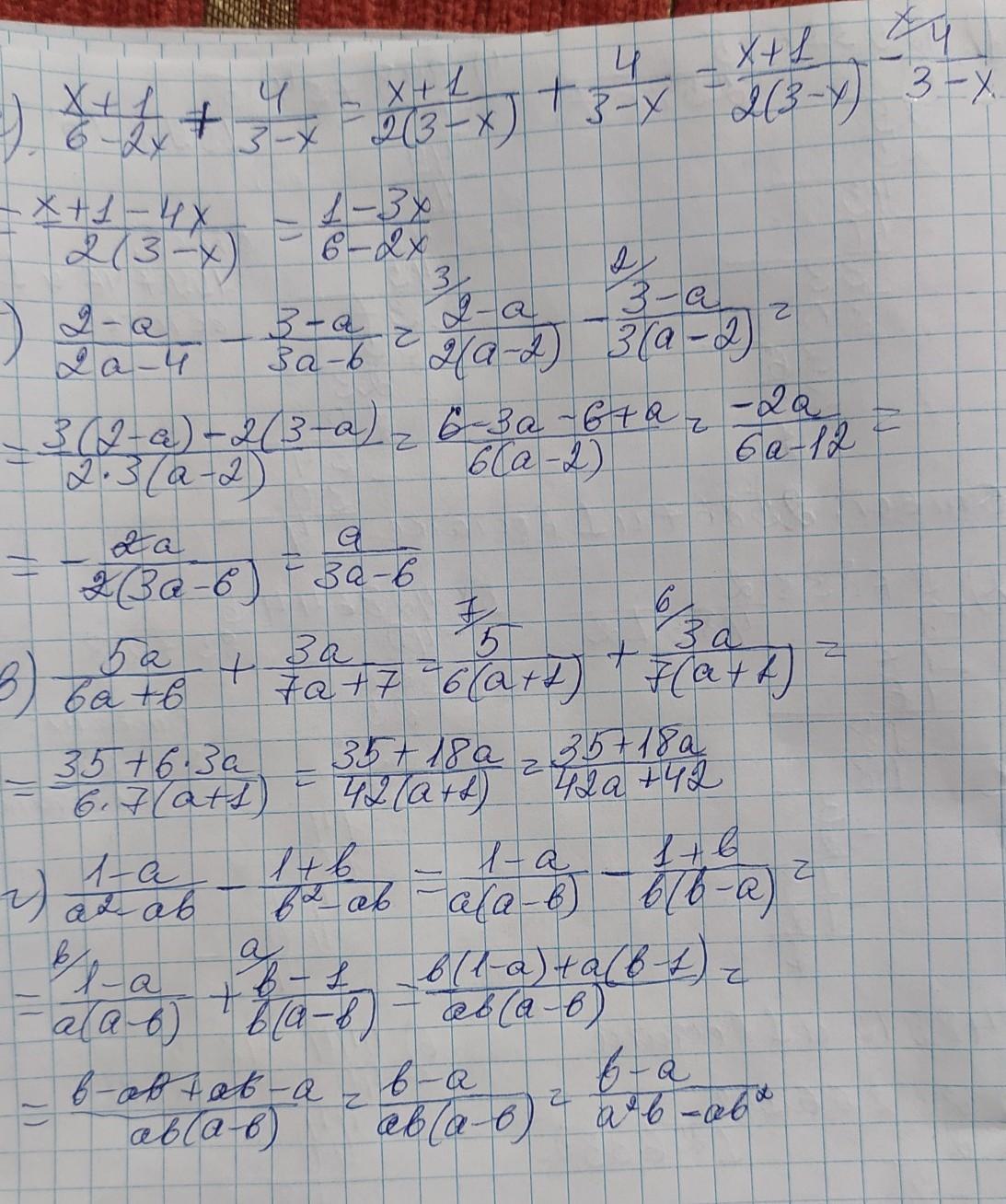 решение готово: на фото. Последний пример г) полностью на втором фото