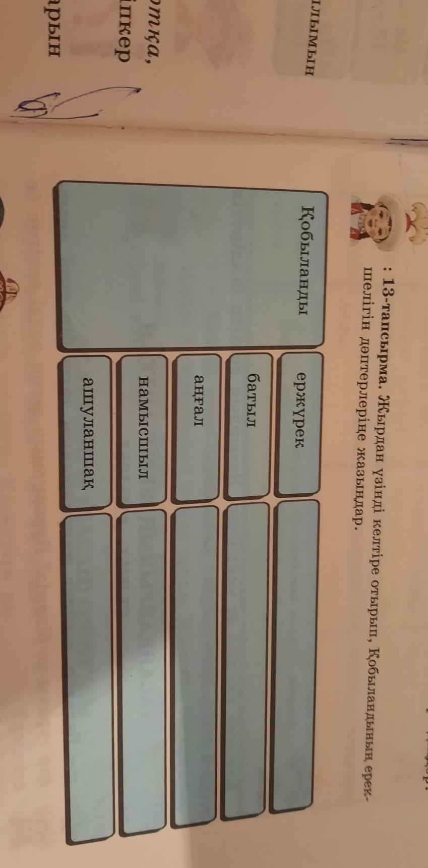 13-тапсырма. Жырдан үзінді келтіре отырып, Қобыландының ерек-