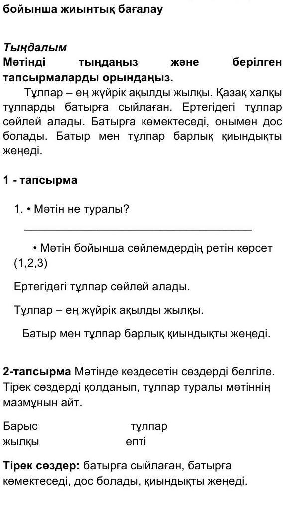 1. мәтін тұлпарлар туралы;