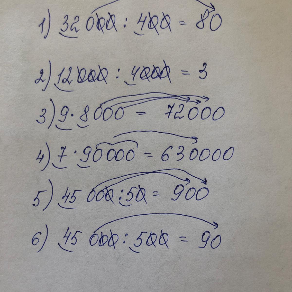 При делении равное количество нулей зачеркиваем с обоих сторон, числа делим, оставшиеся нули переносим