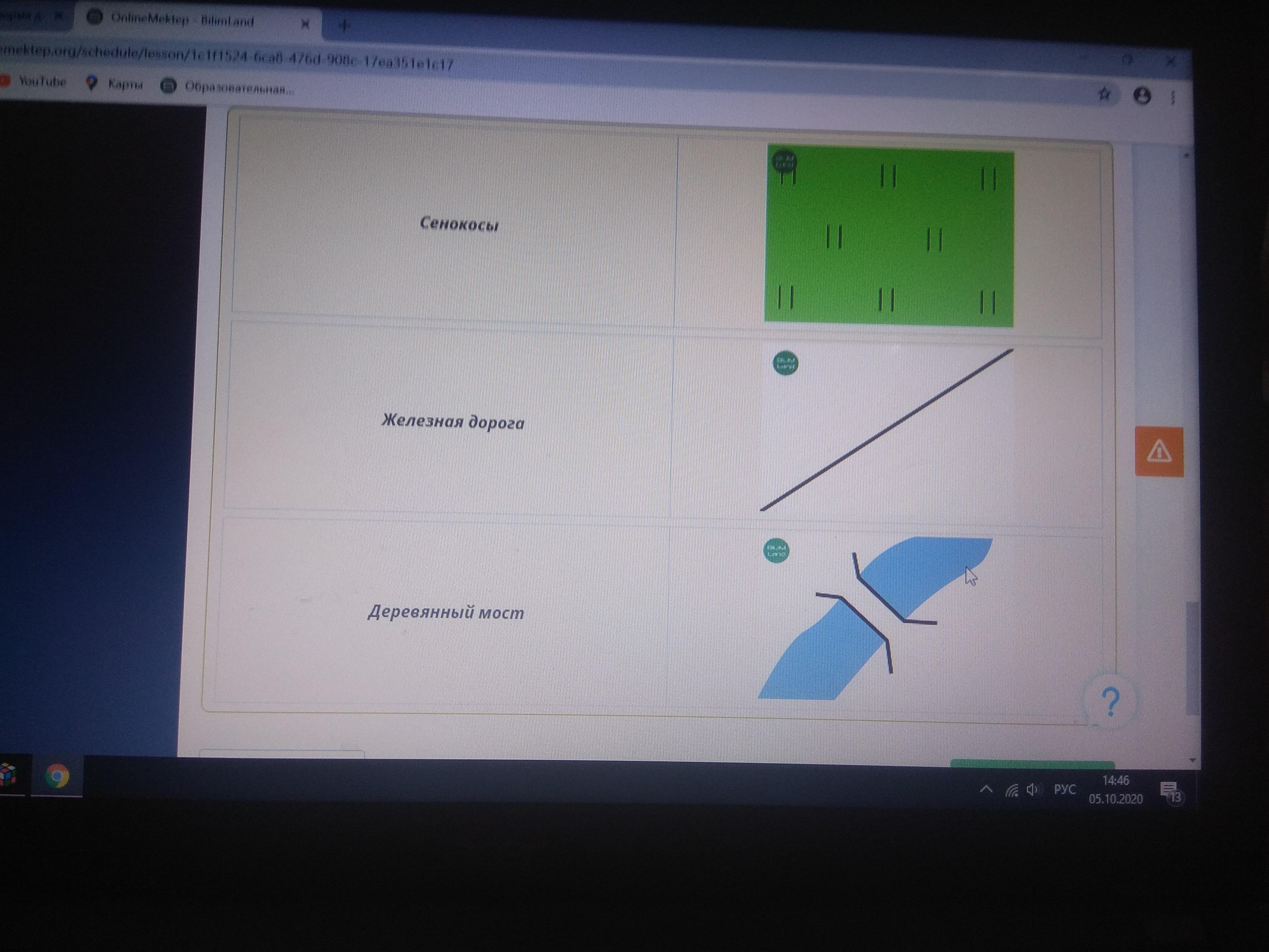 были использованы для обозначения объектов на местности, и установи правильное соответствие