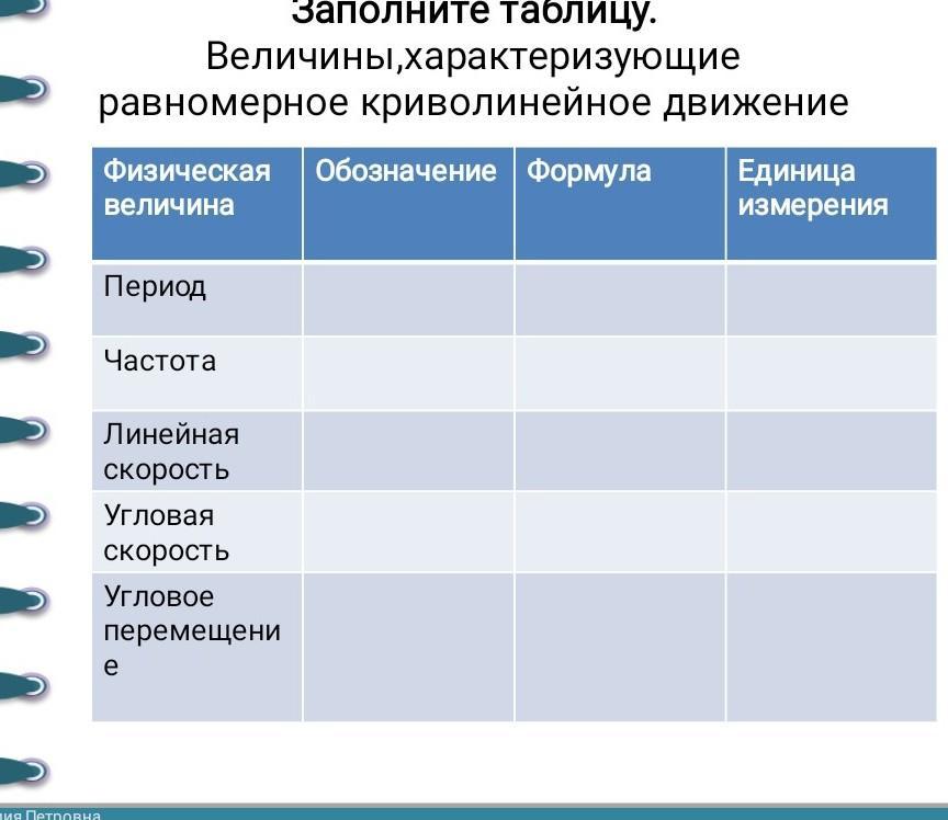 Угловая скорость ω ω=2π/T [ω]=рад/сек