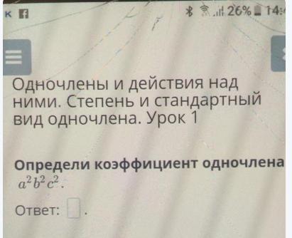 Коэффициент одночлена равен 1, так как в буквенных выражениях можно не писать числовой коэффициент, равный 1.