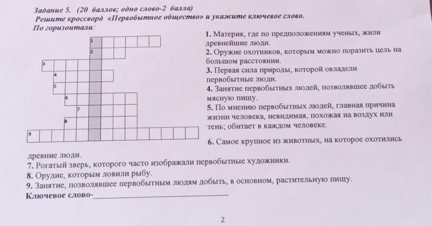 1)Африка, 2)Лук, 3)Огонь, 4)Охота, 5)Душа, 6)Мамонт, 7)Бизон, 8)Гарпун и 9)Собирательство