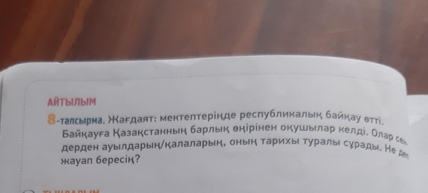 8-тапсырма. Жағдаят: мектептеріңде республикалық байқау өтті.