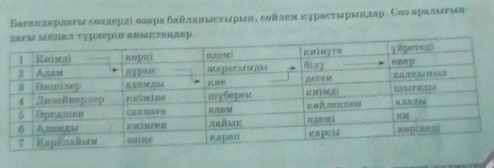 4. Бағандардағы сөздерді өзара байланыстырып, сөйлем құрастырыңдар. Сез аралығын
