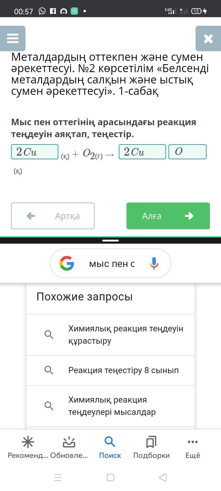 Ответ:2Cu(қ)+О2(г)=2Cu O