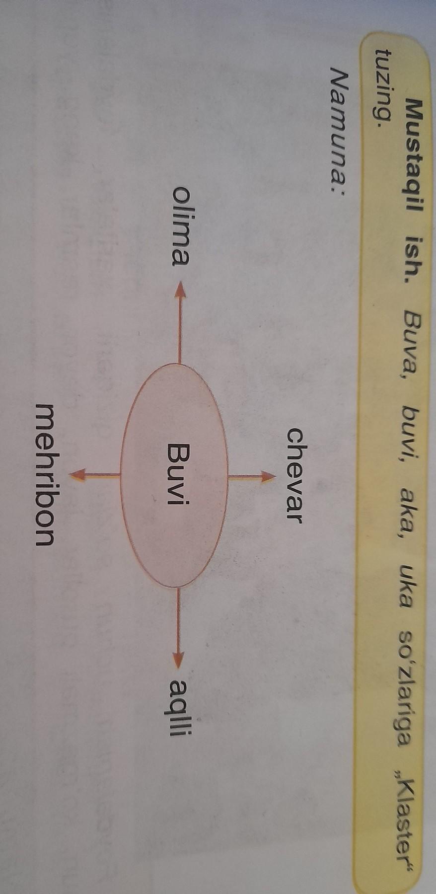 Mustaqil ish. Buva, buvi, aka, uka soʻzlariga „Klaster
