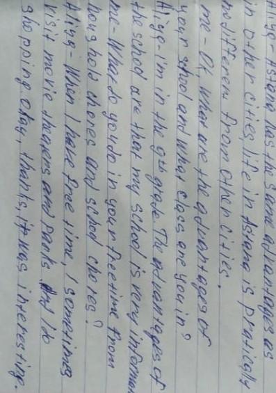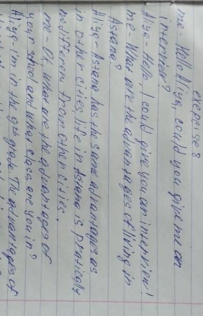 Use your partner's answer to write an interview similar to Aliya's. (100-160 words) use the heading in