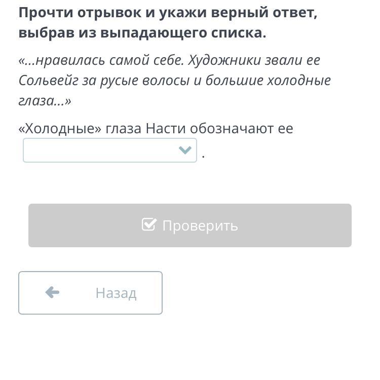 Прочти отрывок и укажи верный ответ, выбрав из выпадающего списка.