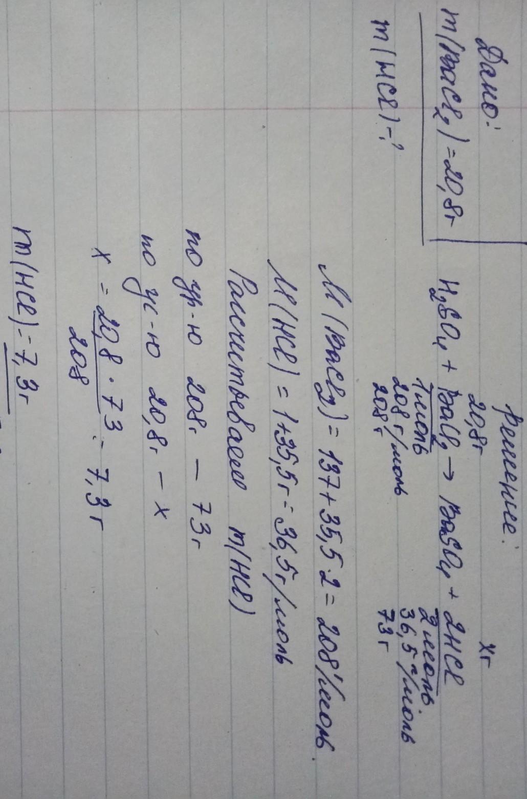 Определите количество соляной кислоты, выделяющейся при реакции 20,8 г хлорида бария с серной кислотой.