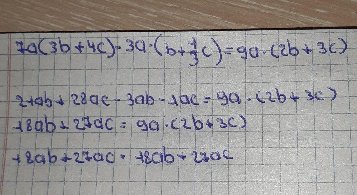 5)7a(3b+4c)-3a(b+1/3c)=9a(2b+3c)