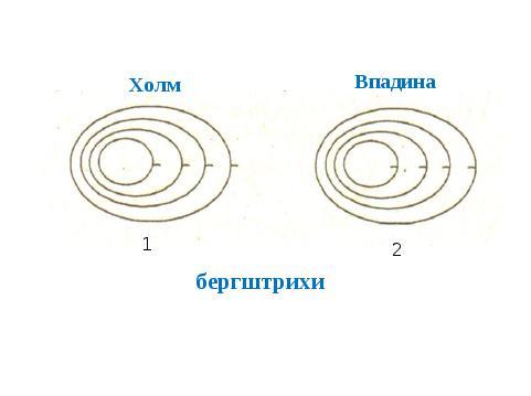 На топографической карте отличить холм от впадины можно с помощью бергштрихов.Это такие чёрточки у горизонталей,которые показывают,в каком направлении рельеф понижается или повышается.Если эти чёрточки направлены наружу-то это холм,если внутрь-то это впадина.