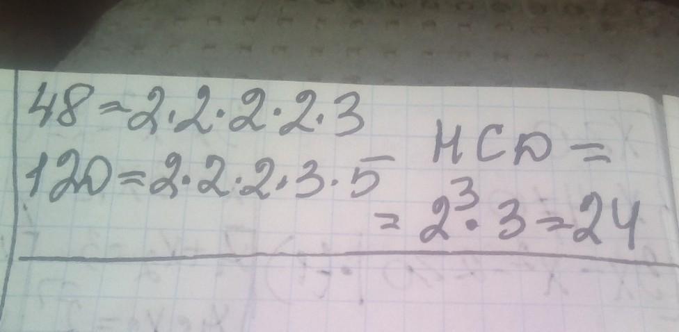 48=2·2·2·2·3; 120=2·2·2·3·5
