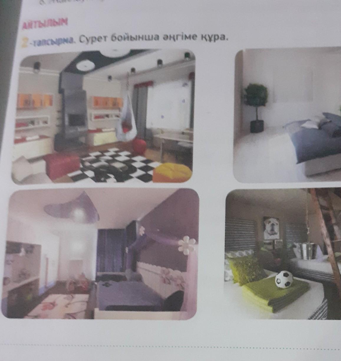 2) Меніід қарындасымның жайлы күлгін бөлмесі бар(У моей сестрёнке уютная комната фиолетового цвета)