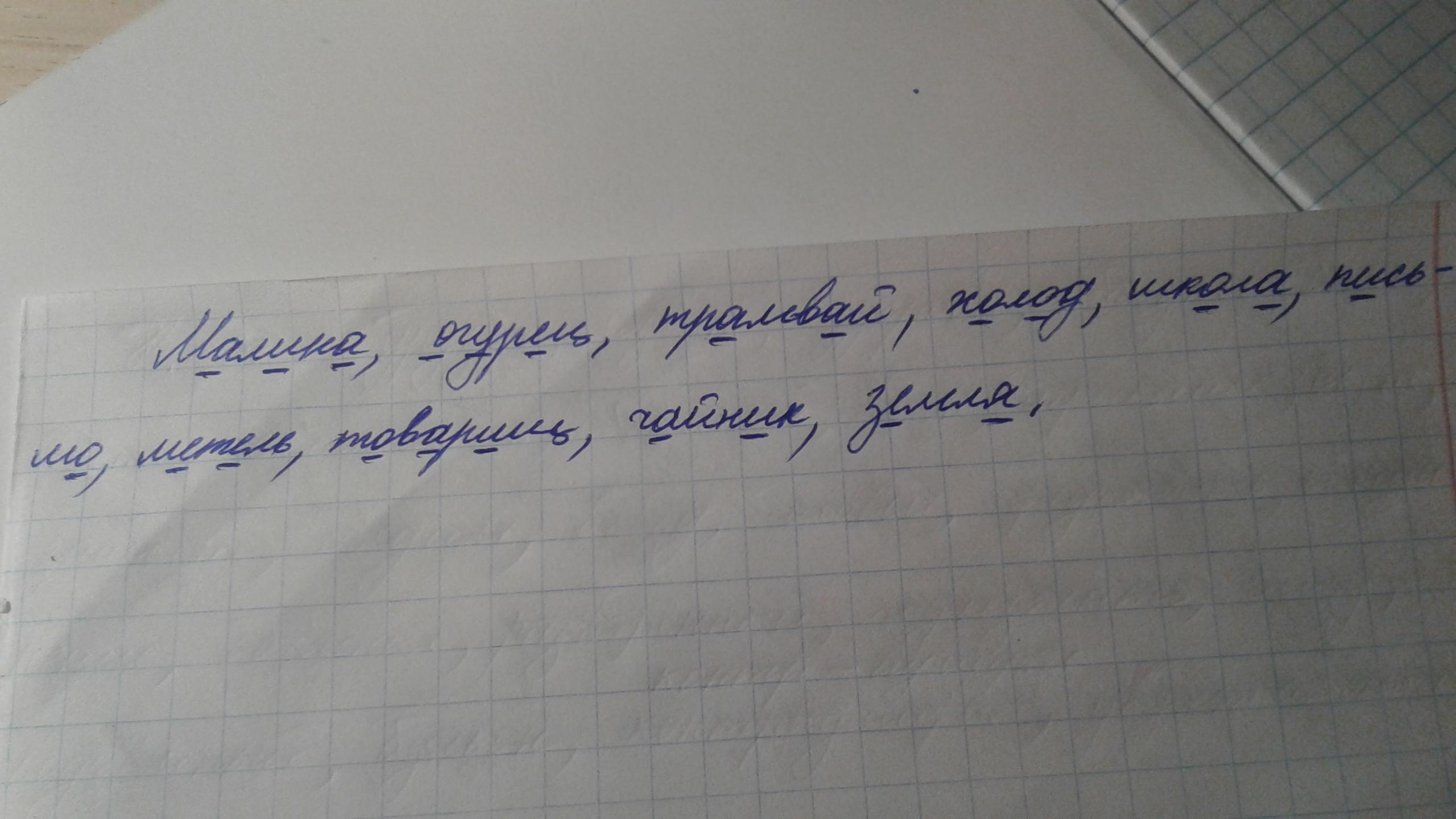 мАлИнА,ОгУрЕц,трАмвАй,хОлОд,шкОлА,пИсьмО,мЕтЕль,тОвАрИщ,чАйнИк,зЕмлЯ