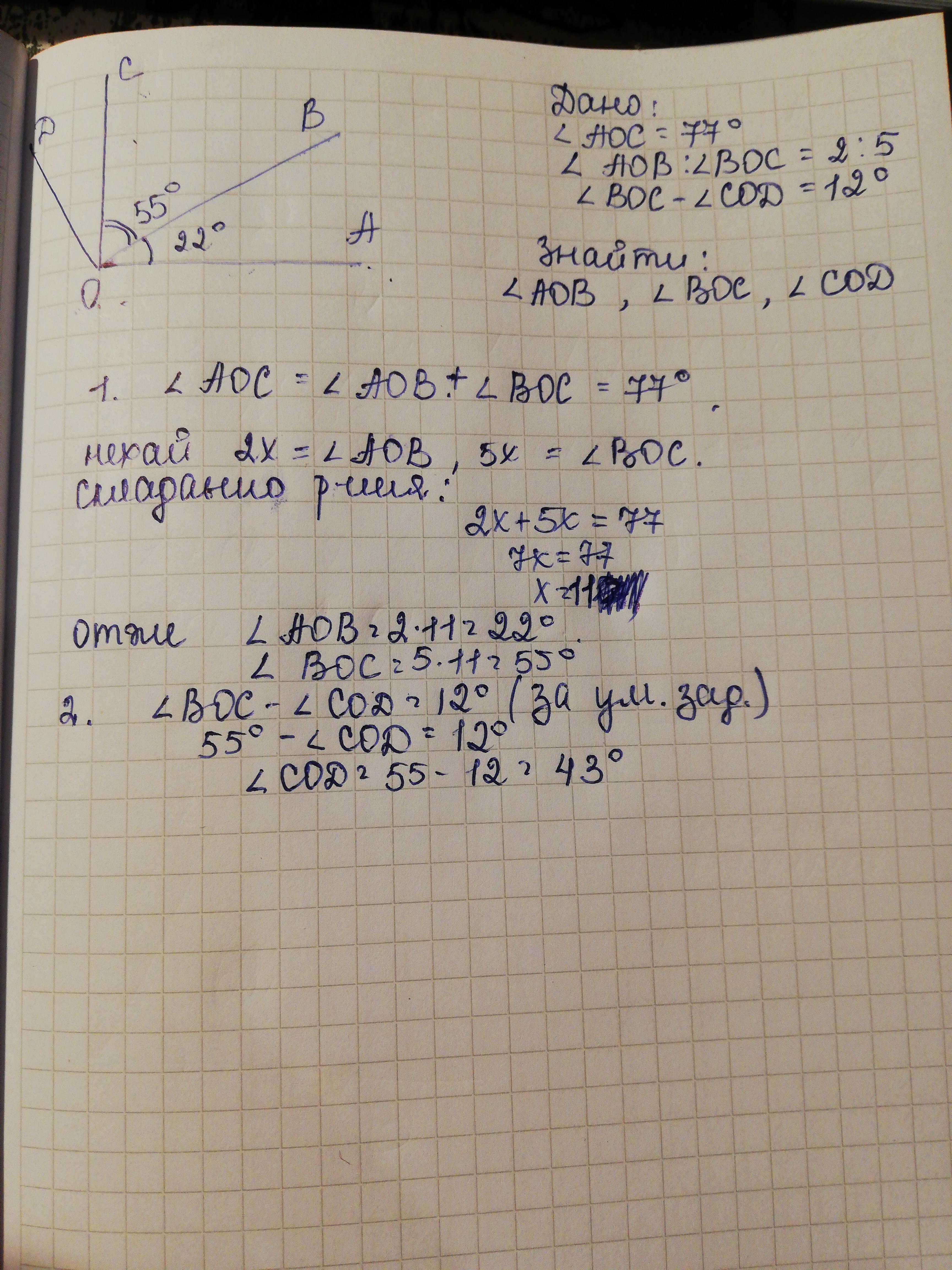 Відповідь: 22°, 55° і 43°