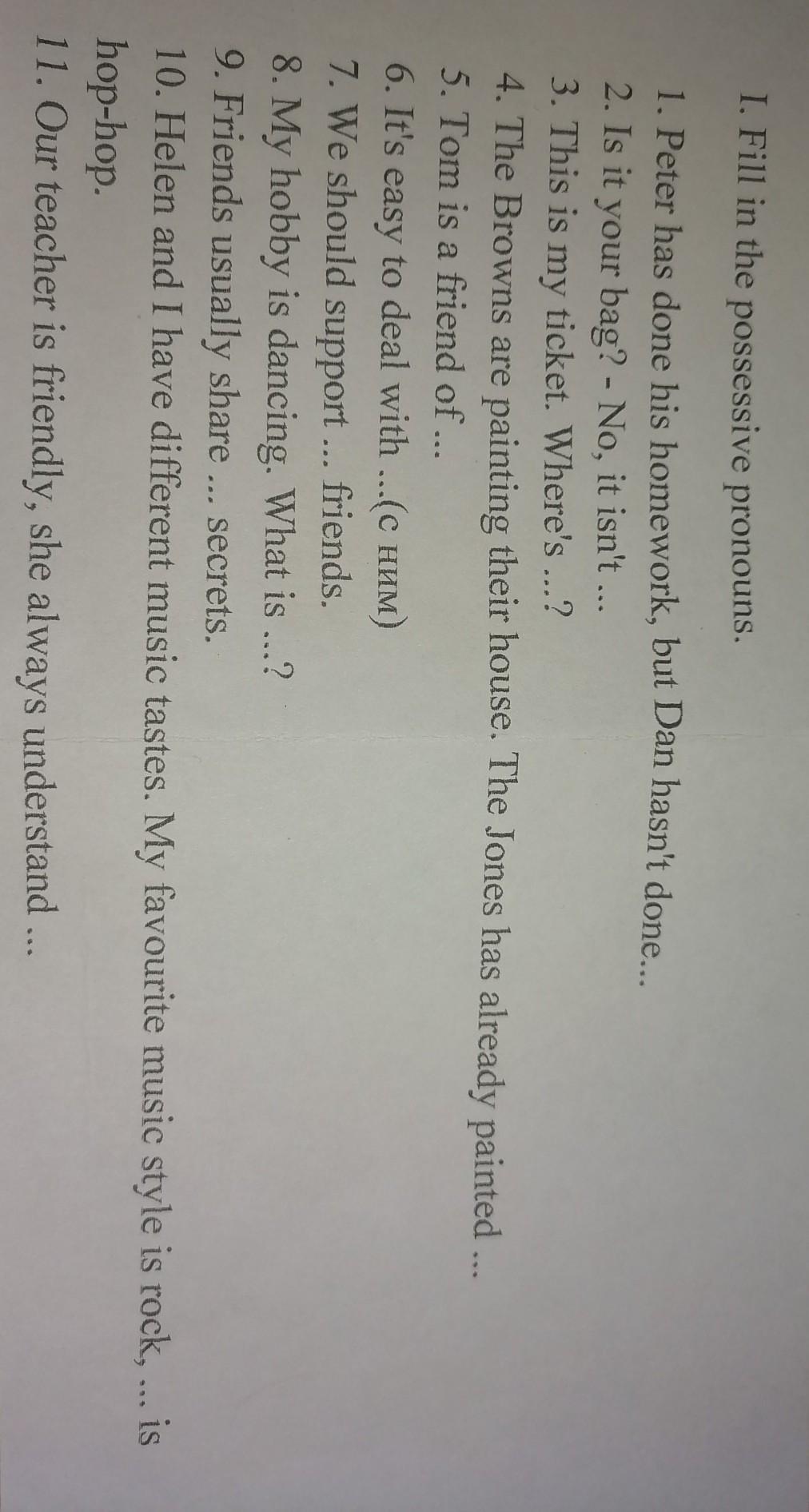 I. Fill in the possessive pronouns.