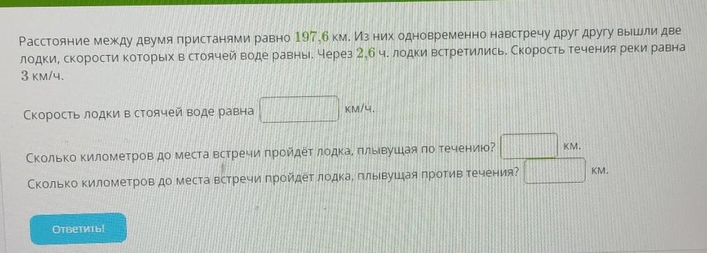 Сколько километров до места встречи пройдёт лодка, плывущая против течения?