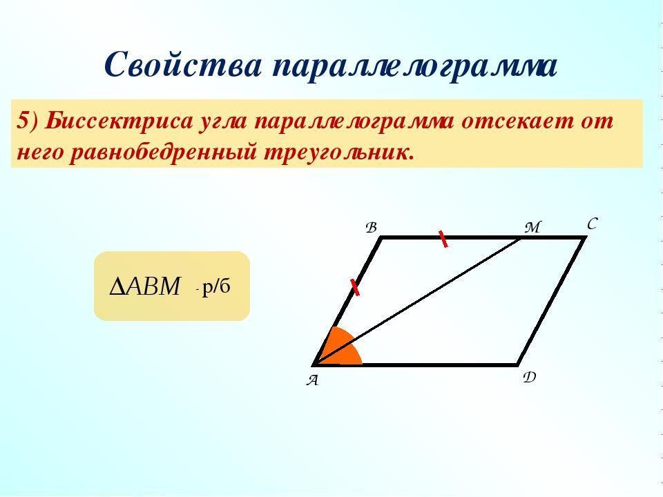 У параллелограмме всі сторони попарно рівні і паралельні.