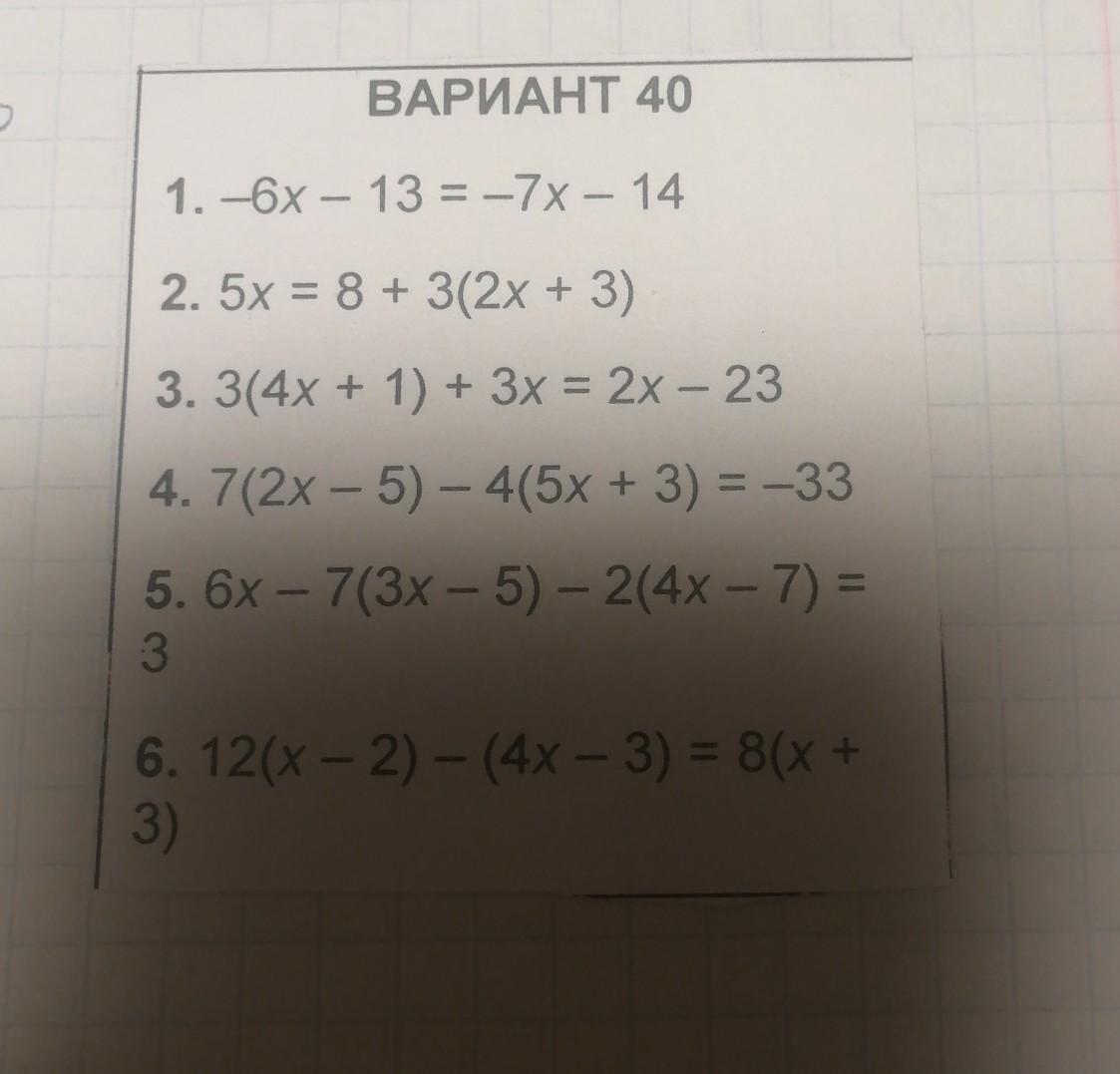 1. -6x - 13 = -7x - 14