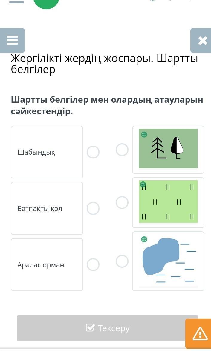 Шартты белгілер мен олардың атауларын сәйкестендір.